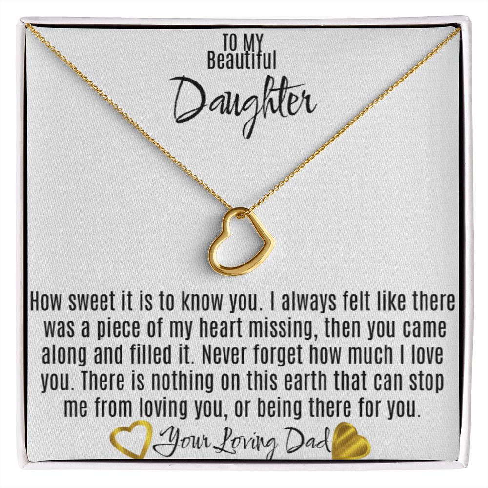 How sweet it is to know you. I always felt like there was a piece of my heart missing, then you came along and filled it. Never forget how much I love you. There is nothing on this earth that can stop me from loving you or being there for you. Your Loving Dad.